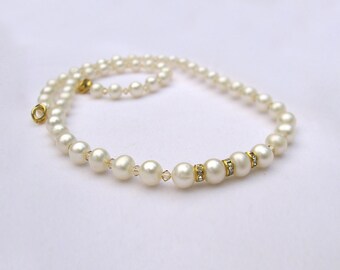 White Pearl Necklace - Wedding necklace - Bridal Necklace - Handmade white round freshwater natural pearls Necklace with crystals Swarovski