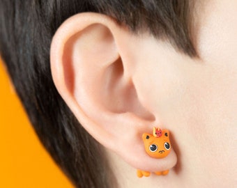 Orange cat | green eyes | orange cat earrings | orange plugs | orange stud earrings | (NO59)