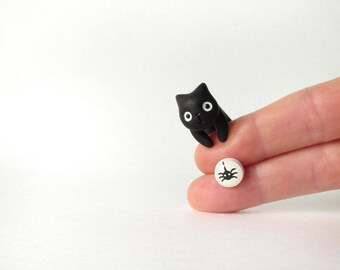 Black cat + spider stud - polymer clay jewelry - autumn collection halloween - hand painted stud earrings - fake plug (NO110)