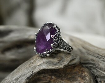 925 Fine Silver Gemstone Amethyst Ring with Diamonds and Rubies "Small Venice" MADE TO ORDER, Gemstone ring,fine silver ring,silver jewelry