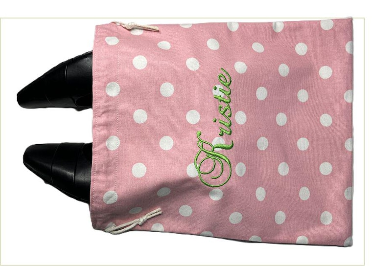 Pink Polka Dot Travel Shoe Bag 13.5" High/Depth 11.5" Top Opening Cost $15.00 -