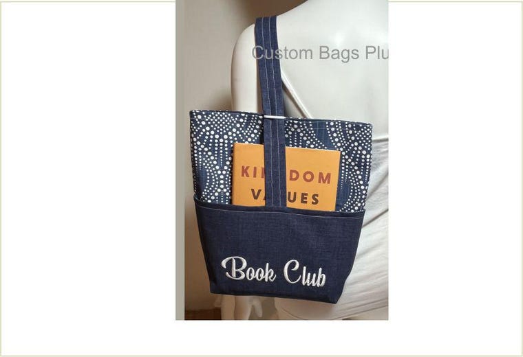 Book Club Bag with outside pocket for book. Inside holders for Wine/Yeti Cup or 2 water bottles. Cost $35.00 -