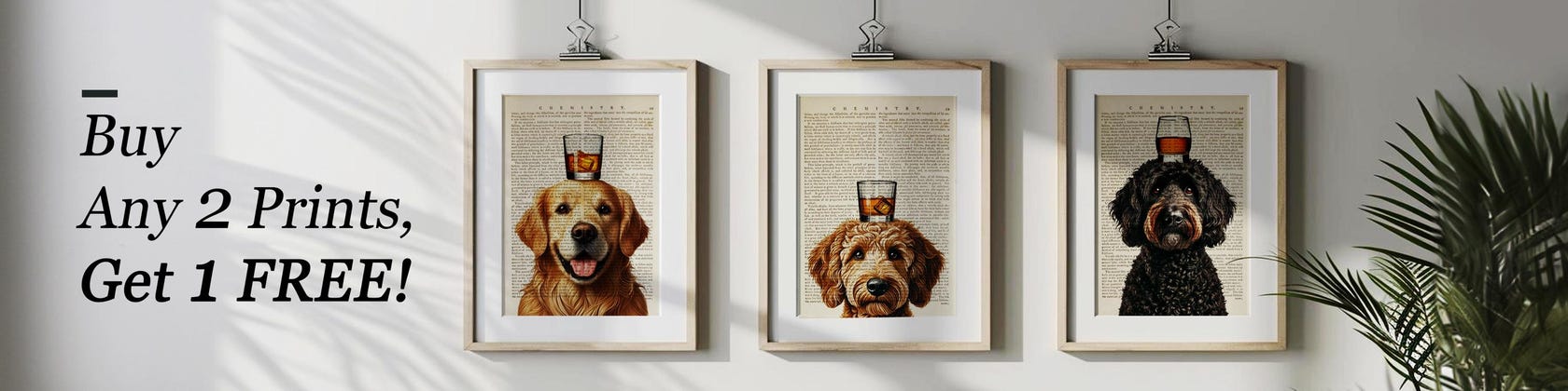 5 out of 5 starsSuch a cute print - The page the crisp and the print is vibrant. Will make a great gift for my bourbon-obsessed, dog-loving husband. Thanks!