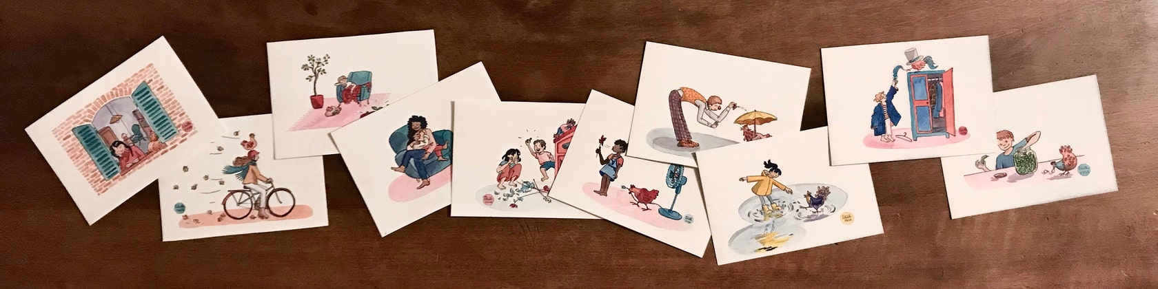 Retrouvez ici des prints, stickers et cartes postales de mon univers coloré, amoureux et plein d’espoir, avec des notes slaves.