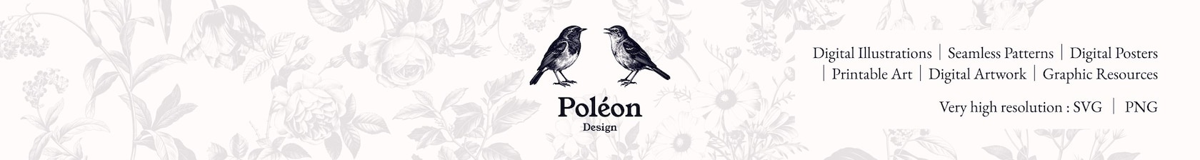 Pensées pour être à la fois poétiques et pratiques, mes créations sont livrées en fichiers SVG et PNG de haute qualité, afin de pouvoir prendre vie sous de multiples formes : affiches murales, papiers peints, tissus, toiles, faire-part, cartes, étiquettes, stickers, carnets ou objets décoratifs imprimés.