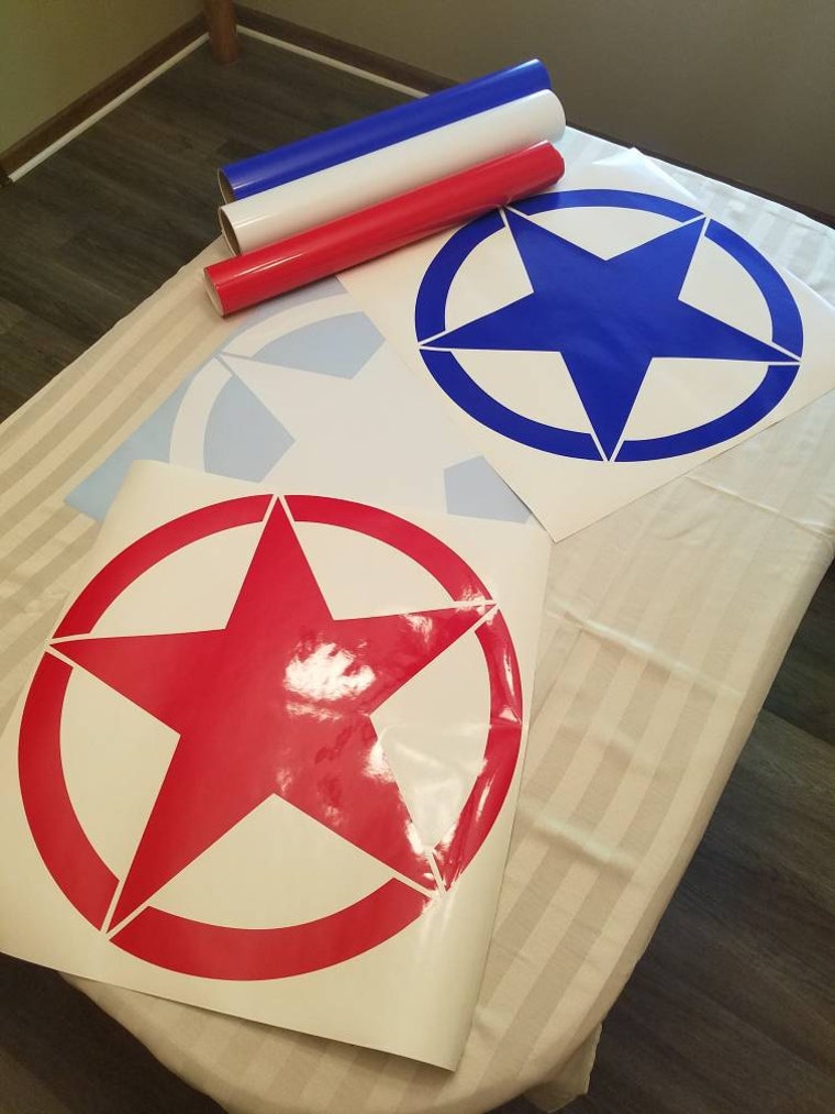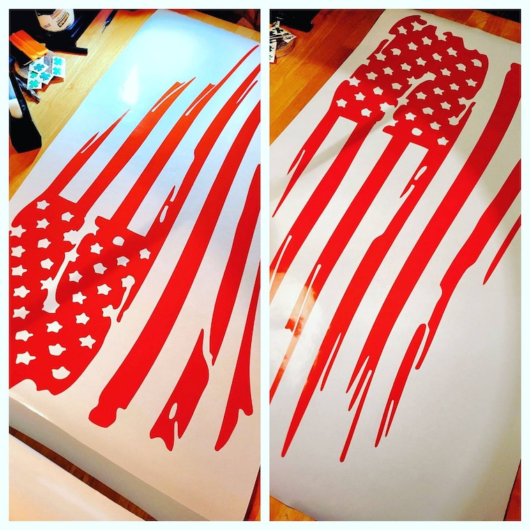 A set of our largest flag decals prior to applying transfer paper, then boxing for shipment. -