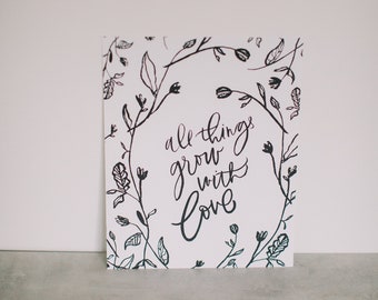 My shop was born from a 25 year love affair with hand lettering, graphic design, art, and a sense of escapism. In March 2013, deep in planning my own wedding, my family encouraged me to share what I had created for myself with others.
