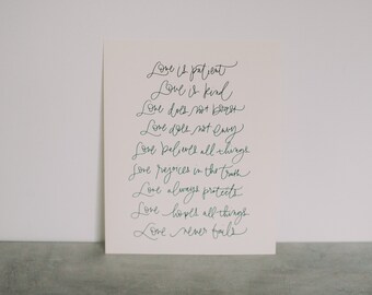 The Client understands that the nature of calligraphy is a handmade process that will differ slightly in each item that is created. Please expect that there will be differences from surface to surface. There can be variations including (but not limited to) ink saturation, font size, spacing and texture. Samples can be purchased to see variations.