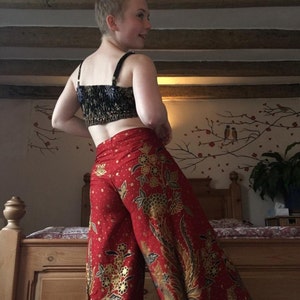 Red Wrap Around Trousers Cotton Batik, Flares, Bali, Festival Trousers, Oriental Handmade Trousers, Floral Bird Print