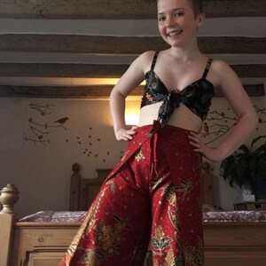 Red and Black Wrap Around Trousers, Flares, Indonesia, Bali, Festival Trousers, Batik Handmade Trousers