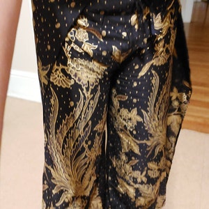 Black Wrap Around Trousers Cotton Batik, Flares, Bali, Festival Trousers, Batik Handmade Trousers, Floral Bird Print