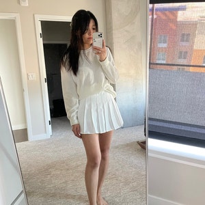 So cute! A bit shorter than I expected but it is a mini skirt so that makes sense. Great quality material, comfortable to wear when I tried it on. Fits PERFECTLY, so well that I’m worried if I eat a heavy meal that it won’t fit anymore lol. Haven’t washed it yet, so can’t say if it shrinks or not. The tag says machine wash cold, tumble dry low, and 100% polyester so it shouldn’t shrink. There’s inner lining for your legs to go through like shorts, which will be very nice when wearing, I’m sure. Really excited to wear this, it’s so cute.