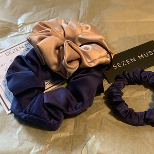 These scrunchies are so beautiful in person, they look and feel luxurious. The pictures are exactly what you get with stitching that’s seamless and professional. The seller was really sweet and easy to work with and extremely responsive. When I requested them to be extra oversized she was so helpful and made them exactly as I’d hoped. She even included a handwritten note that made it feel so personal. Shipping was super quick too. Within a day they were done and sent.