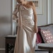 Silk Wrap Mini Dress, Silk Mini Dress with Bracelet Sleeves, Champagne Silk Dress for Special Occasions, Romantic Dates, Wedding Guest Dress