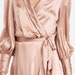 Silk Wrap Mini Dress, Silk Mini Dress with Bracelet Sleeves, Pink Silk Dress for Special Occasions, Romantic Dates, Wedding Guest Dress