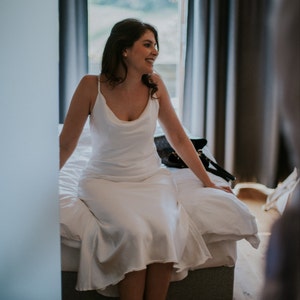 White Silk Wrap Dress, Silk Wrap Midi Dress, Elegant Silk Dress Long Sleeve Wrap Dress, White Courthouse Wedding Dress Silk