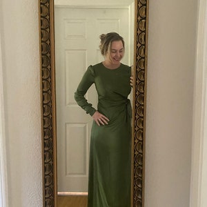 Khaki green Silk Wrap Mini Dress, Special Occasion Silk Dress Wedding Guest Silk Dress Khaki Green Silk Dress with Long Sleeves