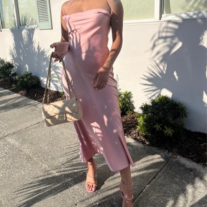 I love this dress so much, it is a lovely cut and more flattering than some slip dresses, unfortunately the S/M size is a bit small on my size 10 frame - I would recommend sizing up. My daughter is a 6 and it fits her better, I'd say S/M is an 8-10. Hope that is helpful to others, it really is a beautiful dress.