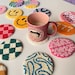 Japanese-style recycled denim coasters. Hand-embroidered. Each coaster is unique.