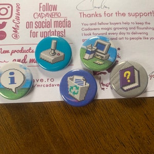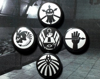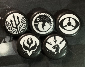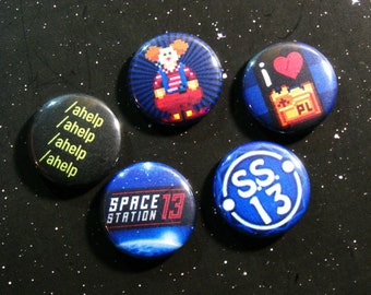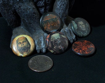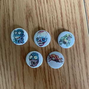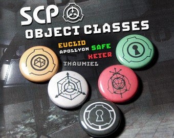 Small set of 5 pin-on "punk" style buttons with alternative assorted classes of SCP. Pin-on buttons are 1" in diameter, covered with a thin mylar protective film. Full color and brand new, good for any button enthusiast.