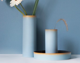 Scandinavian Cylinder Vase (Lake Blue), Nordic, Ceramic, Home Decor, Minimalist, Contemporary, Handmade