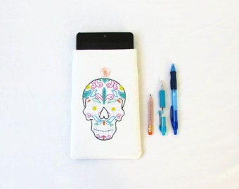 CLEARANCE Skull kindle cover, sugar skull hand embroidery, 7 inch tablet case, nexus 7, kindle fire, Tech gift for teen, handmade in the UK