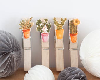 Potted Plant Fridge Magnet Pegs | Plant Pegs | Plant Fridge Magnets | Magnetic Pegs | Illustrated Houseplants | Houseplant Magnets | Cacti