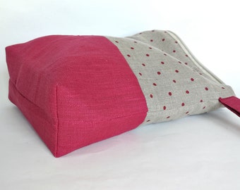カモミールリネン編み物プロジェクトバッグ - ファスナー付きかぎ針編みオーガナイザー - ハンドメイド花柄トートバッグ - 大容量の毛糸収納 - 編み物愛好家、女性、お母さんへのギフト