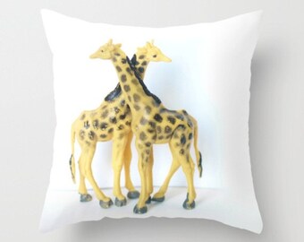 Giraffe Pillow Nursery Decor Child's Room Giraffe's In Love Sweet Things Yellow Black Dots Hooves Vintage Toys
