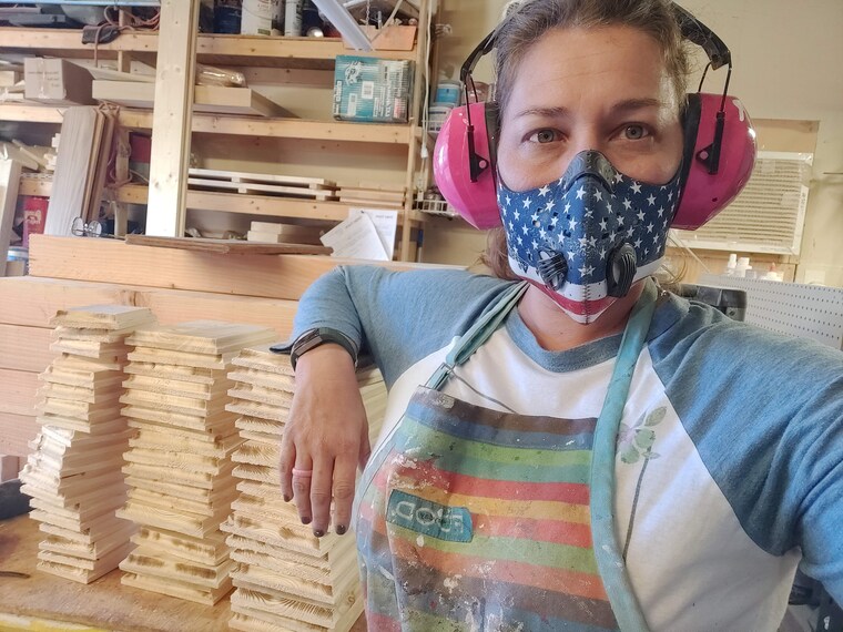 Mesas personalizadas, banderas americanas, tablas de masa y rótulos rústicos, orgullosamente hechos en América.