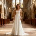 Silky Ivory Satin Wedding Dress: Square Neckline, Long Sleeves