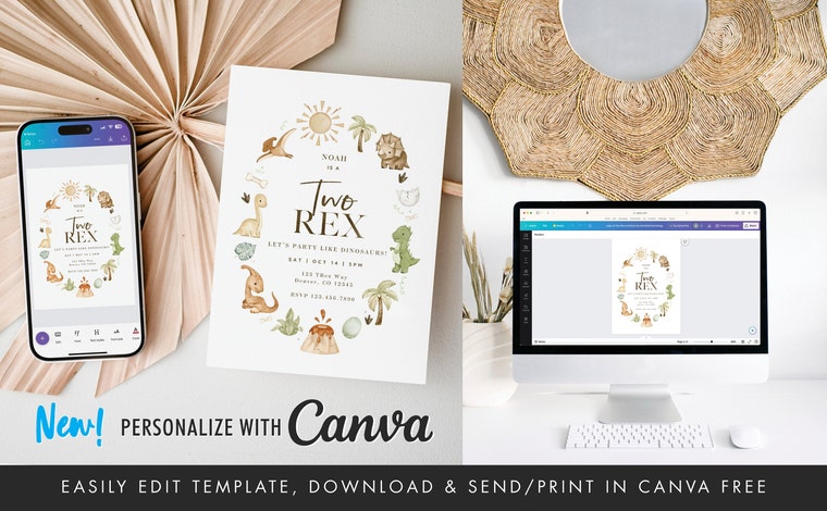 Most text is editable on templates including the font style, size and color with a free Canva account. Unless otherwise noted in the listing description, all text will be editable but graphic elements will not be. You can easily add additional text boxes, photos or canva design elements to your invitation/item.