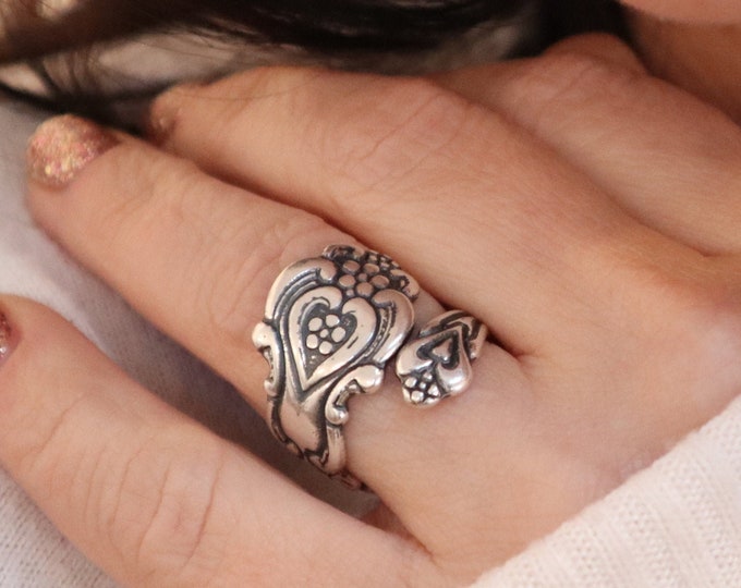 Spoon Ring, Bypass Ring, Adjustable, Sterling Silver Ox Finish