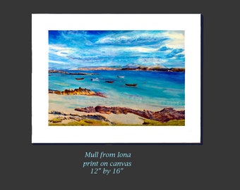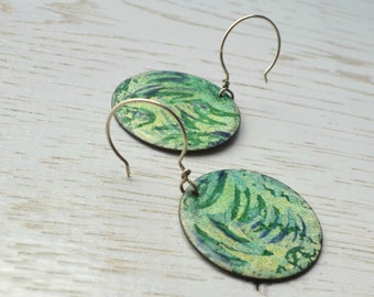 Flask Vase - White vase with fern illustration in cobalt, mint, teal and red