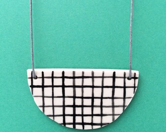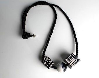 Monochrome Hand Painted Geometric Bead Shapes Statement Adjustable Necklace