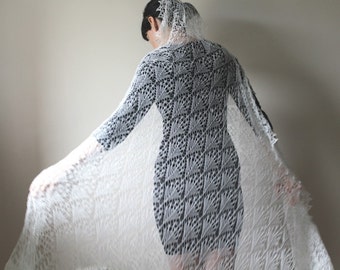 Romantic, large cream cashmere lace veil/shawl/wrap rectangular, perfect for brides, wedding shawl