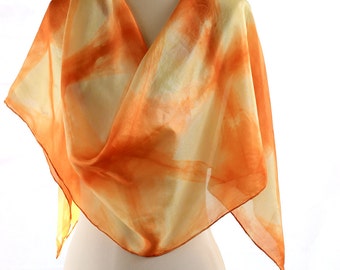 amber silk scarf geometric, naturally dyed silk shawl amber burnt orange shawl hand dyed shibori scarf, ecological christmas gift for her