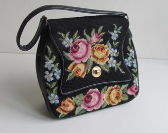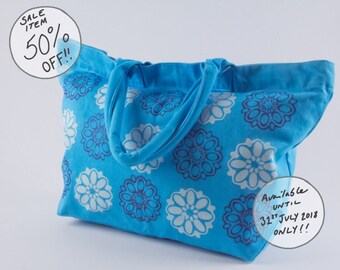 Turquoise canvas deck bag cotton tote bag travel bag beach bag holiday bag weekend bag hold all bag hand dyed & handprinted with 60s pattern