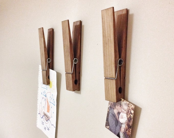 Large Rustic 9" Decorative Clothespin in dark walnut finish - office home bathroom nursery laundry wall decor note photo holder x-mas gift