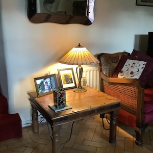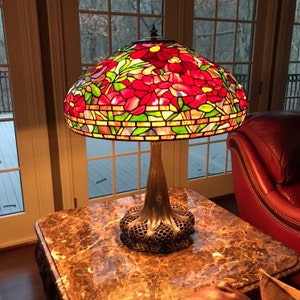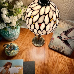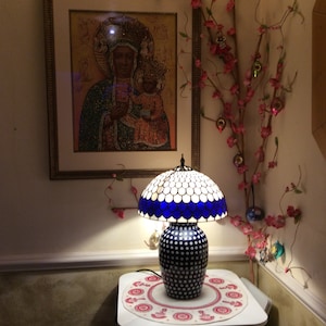 Questa lampada è davvero bella e ho trascorso alcuni minuti ad apprezzare la complessità del design in stile Tiffany. L'immagine non cattura quanto sia ben fatto il paralume e l'artigianalità della lampada stessa. Difficile da descrivere davvero fino a quando non si tiene effettivamente la lampada tra le mani. Inoltre, Marta è stata estremamente disponibile e reattiva con le nostre preoccupazioni sull'acquisto di una lampada cablata per la tensione europea, ma un semplice convertitore ha fatto il trucco. La spedizione richiede un po 'di tempo se sei internazionale, ma c'era da aspettarselo e vale la pena aspettare. Fortemente consigliato se stai considerando una lampada di questo negozio. Grazie ancora! Oh e la moglie l'ha adorato!