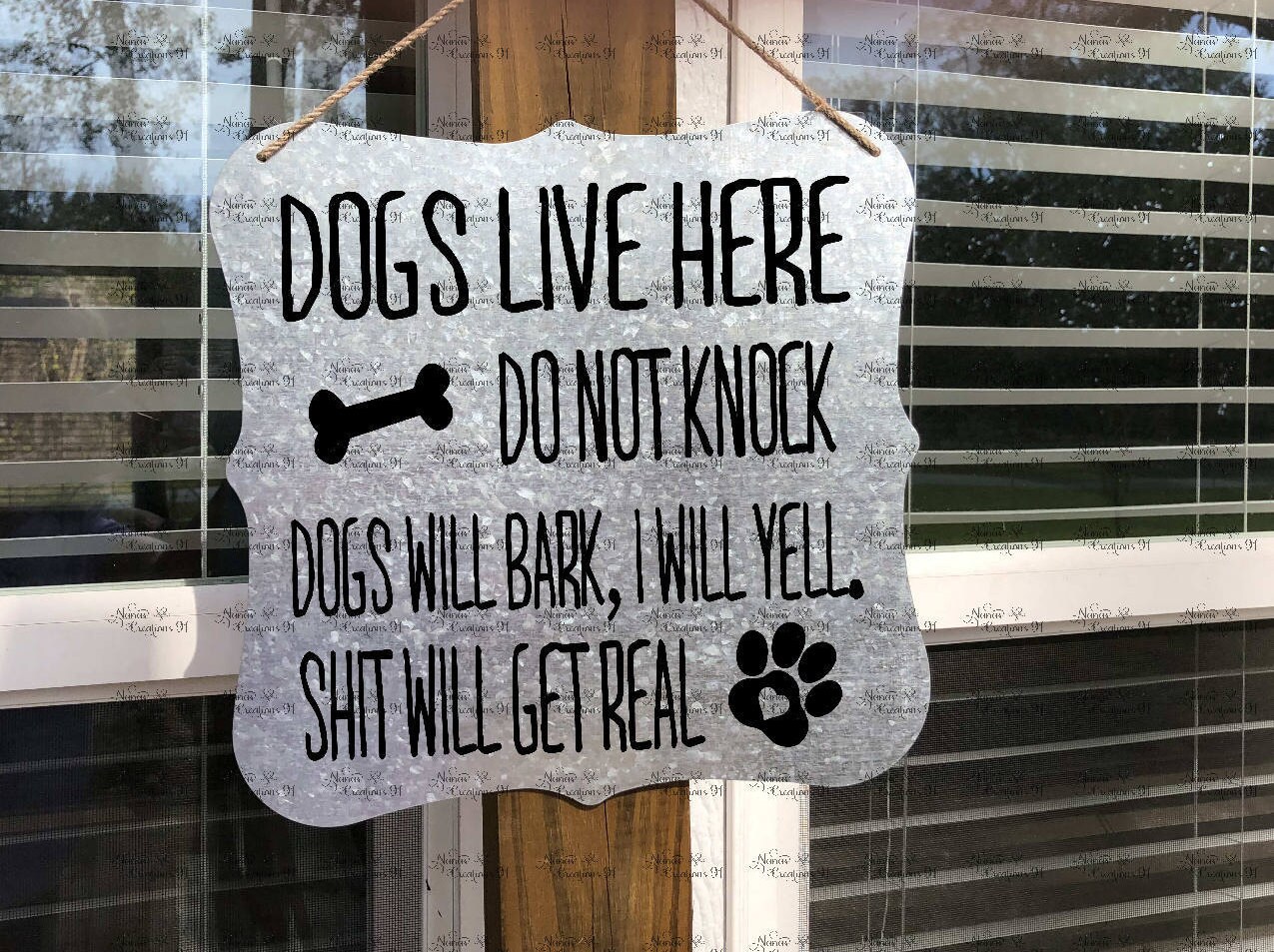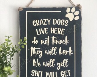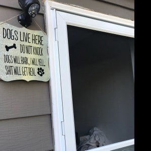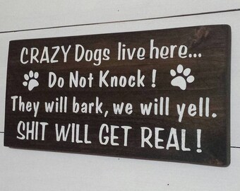 Dogs live here | Dogs Sign | Dogs will Bark | Galvanized Sign | Outdoor Signs | Shit will get real | Barking Dog Sign | Do Not Knock Sign |