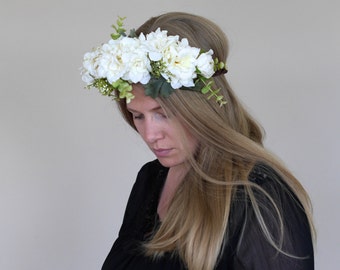 The Boho Beauty - delicate small white flower crown with baby's breath, bridal, bride, wedding, bridal headpiece, headband, flower girl