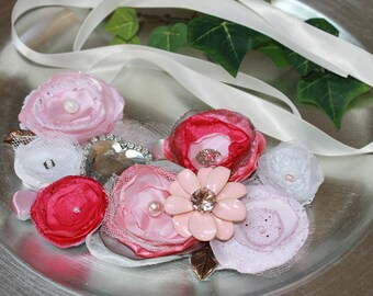 Pink and white flowers,charms and heart shaped pendant bib necklace FREE SHIPPING