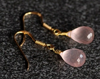 Fine earrings rose quartz briolettes dangle earrings drops briolette italian quality wedding