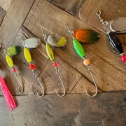 Sí, los hacemos a mano. Descubrimos que pescar con cucharillas para salmón y trucha arcoíris no solo es muy divertido, sino que también lo es hacerlos. ¿Son los mejores del mundo? Vamos, no, no lo son. ¿Son los segundos mejores? No. ¿Los terceros o los cuartos mejores? Tal vez. Pero nos gusta pescar con ellas y donamos $1 por cada una que vendemos a agencias de conservación pesquera, así que eso está bien.