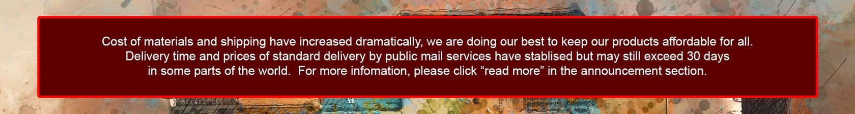 El costo de los materiales y el envío han aumentado drásticamente, estoy haciendo todo lo posible para mantener mis productos asequibles para todos. Se espera que los servicios de correo público se desaceleren por el aumento de los costos del combustible, elija un servicio de mensajería privado para evitar retrasos.