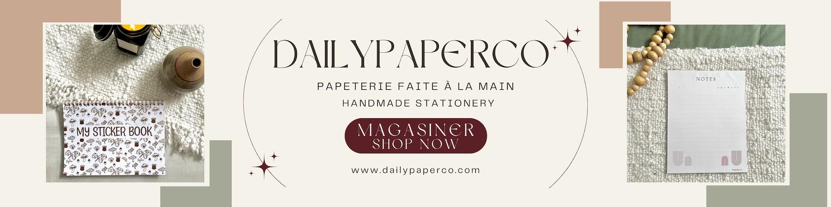 The story of DailyPaperCo began due to the lack of diary and stationery that suited my needs when I was a student. I then decided to start my own stationery company, in order to produce articles that suited me and which would also suit all those who had the same problem: stationery not adapted to their image and their needs. Each item is thought out, designed and created by myself, in my small office at my home. All your packages are also packaged, assembled and shipped by me. It will be my pleasure to prepare your orders and do not hesitate to write to me with any questions!