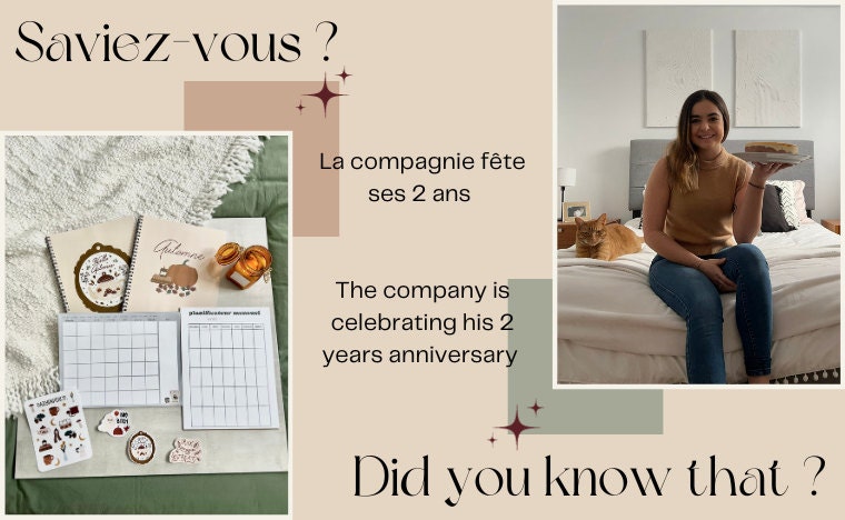 L'histoire de DailyPaperCo a débuté en raison du manque d'agenda et de papeterie qui convenait à mes besoins lorsque j'était étudiante. J’ai alors décidé de partir ma propre compagnie de papeterie, afin de produire des articles qui me convenaient et qui allaient aussi convenir à tous ceux et celles qui avaient le même problème : de la papeterie non adaptée à leur image et à leurs besoins. Chaque article est pensé, dessiné et créé par moi-même, dans mon petit bureau à mon domicile. Tous vos colis sont aussi emballés, assemblés et expédiés par moi. Il me fera plaisir de préparer vos commandes et n'hésitez pas à m'écrire pour toutes questions!