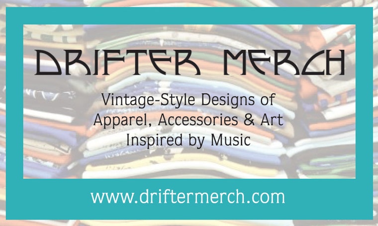 Drifter Merch was founded in 2016 by Lorrie Dixson Griggs and the late Bert Griggs, music lovers who both have traveled extensively all over for good tunes.