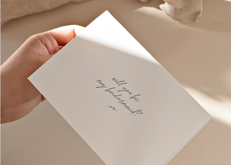 Today, Ivory & Stone is highly sought after by couples around the world, known for their signature minimal aesthetic. Their letterpress vow books and bridesmaid proposal cards are a best seller, blending traditional craftsmanship with modern design.
